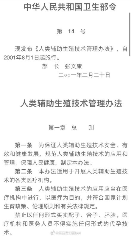 規定代孕不合法的是《人類輔助生殖技術管理辦法》,與這次修改的《民法典》並不是同件事。