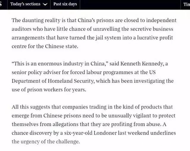 這位高管表示,他也是通過媒體的詢問才得知此事,並頗為憤怒地表示他們企業從來沒有英國媒體所宣稱的“使用囚犯”或“與監獄合作”的情況,“我們是絕對不會有這種事情的,我不知道為什麼這些媒體會這麼説,我們也是第一次聽説這種事情”。