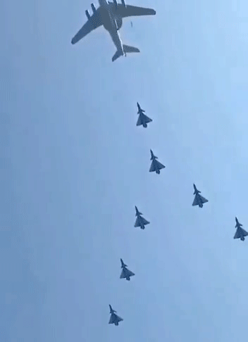 事件回顧: 國慶大閲兵剛剛結束,一則“受閲飛機出現掉落物”的視頻就在自媒體和微信羣中傳播。有人在網上放出在北京國貿橋附近拍攝到領隊機梯隊飛過天空的畫面,畫面中預警機右側有黑點彷彿“快速墜落”,引發網友眾多猜測。