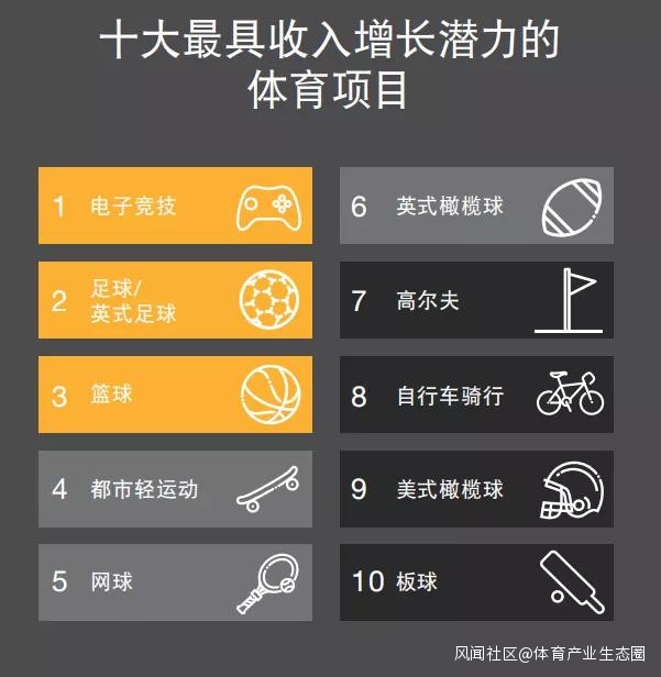 在所有項目之間,電子競技如期成為了最熱門項目,連續兩年在收入增加潛力方面排名第一,所有地區無一例外。緊隨其後的是足球和籃球。
