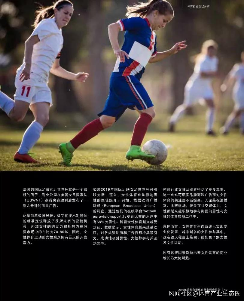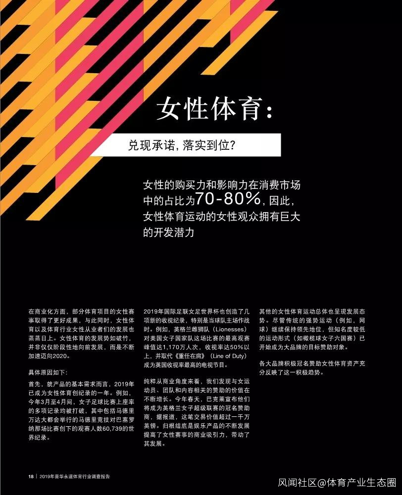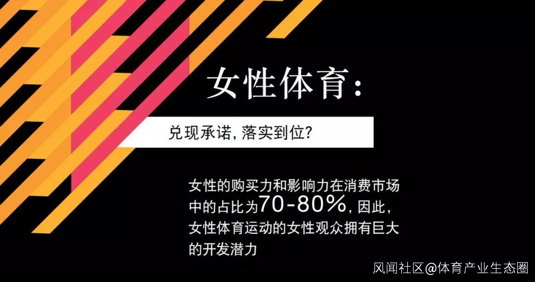 此外,報告還指出,在體育消費領域,「她經濟」依然有待挖潛。女性的購買力和影響力在消費市場佔比達到七至八成,因此,女性體育運動的女性觀眾擁有巨大的開發潛力。