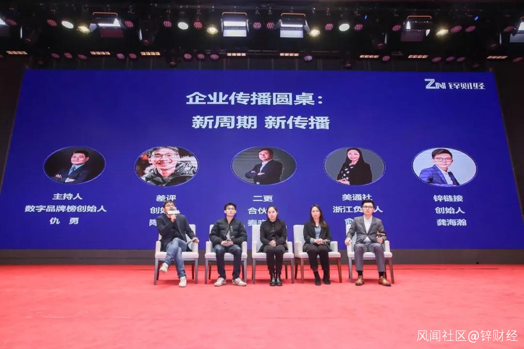 在圓桌會議上,鋅財經特邀數字品牌榜創始人仇勇擔任圓桌主持人,並邀請差評創始人陶偉華、二更合夥人秦曉峯、美通社浙江負責人俞芬、鋅鏈接創始人龔海瀚進行討論。