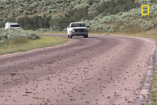 不過如果是在公路上蜂擁而過,它們留下可能就是自己的屍山血海,關鍵還會危害交通。因為車輪碾過,會血污滿地,走過的汽車可能會像行駛在冰面上一樣打滑。