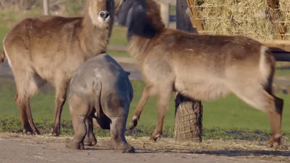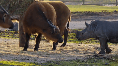 而也正是因為視力差,它經常玩出各種憨憨行為。像是遛彎的時候差點一頭撞到剛果水牛…