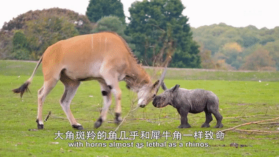 後來找鄰居大角羚羊比劃比劃,交手不到一秒,扭頭就跑: