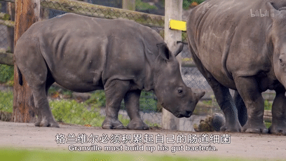 犀牛在成年後會食用大量的草,而小犀牛剛剛出生幾周的時候,它的腸道細菌積累還不夠,為了未來,這時候就需要從老媽那裏獲得益生菌,而方式….就是食用一些媽媽的糞便。