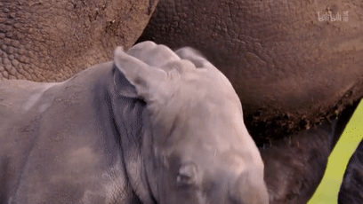這是一隻白犀牛幼崽,之所以大家都叫它憨憨犀牛,是因為據紀錄片介紹,這隻幾周大的小犀牛「在巨大的裝甲頭骨中,包藏着哺乳動物裏重量最小的大腦」…