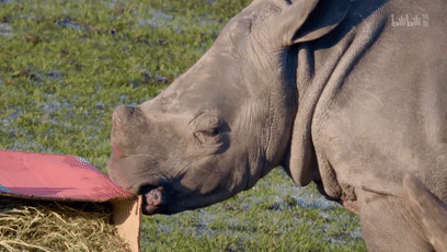 人類為犀牛一家送來了一盒乾草作為禮物,準備讓憨憨犀牛品嚐一下美食。