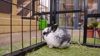 像是下面這隻小型垂耳兔幼崽,説起來你可能不信,它正在準備越獄,突破下面欄杆的阻擋: