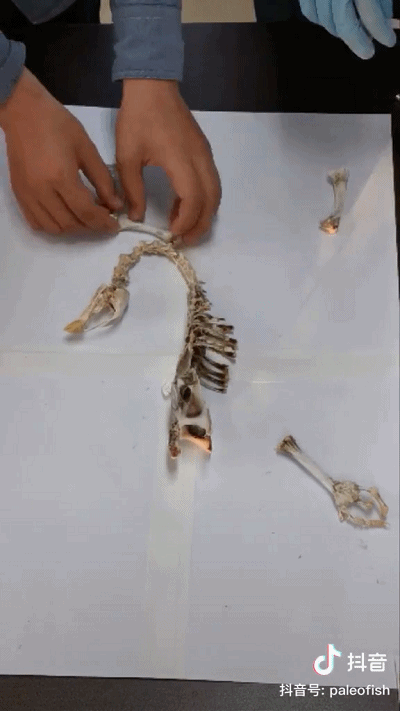 於是,她在“玩骨頭的盧老師”上發佈了第一期視頻:把魚頭泡餅裏的胖頭魚頭骨變成骨骼標本。