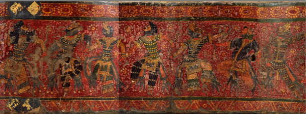 新疆蘇巴什古寺遺址出土的舍利盒上描繪着的龜茲“蘇幕遮”樂舞圖
