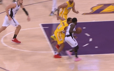 湖人隊的打法雖然全靠詹姆斯支配球,但他本人的進攻分量很重,除了和濃眉的二打二擋拆,自己的一對一的單打也很多。不過開局被頂要害部位之後,他幾乎沒有個人的一對一進攻。