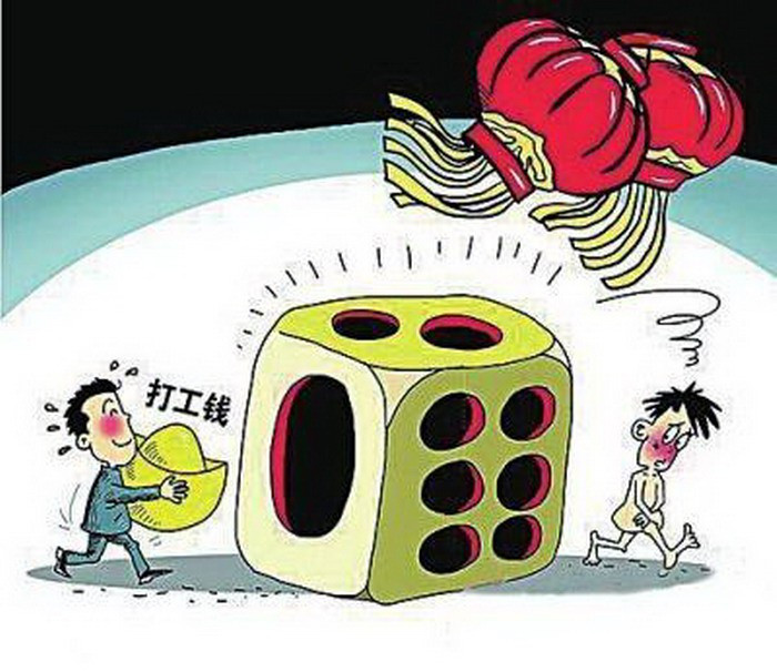 據筆者多年調查瞭解,每年農曆春節期間,農民工放假集中返鄉過春節的高峯期,也是聚眾賭博高發期,一些農民工在外打工為了掙錢,常常起五更睡半夜,甚至流血流汗和忍飢挨餓,靠賣苦力掙的錢本來不容易,可是,春節放假一回到家裏,卻把在外吃的苦頭都忘了,裝起有錢大老闆,不分白天黑夜爬在麻將、撲克等賭博桌上,甚至連路費都輸光,辛辛苦苦掙的錢扔在賭博桌上。