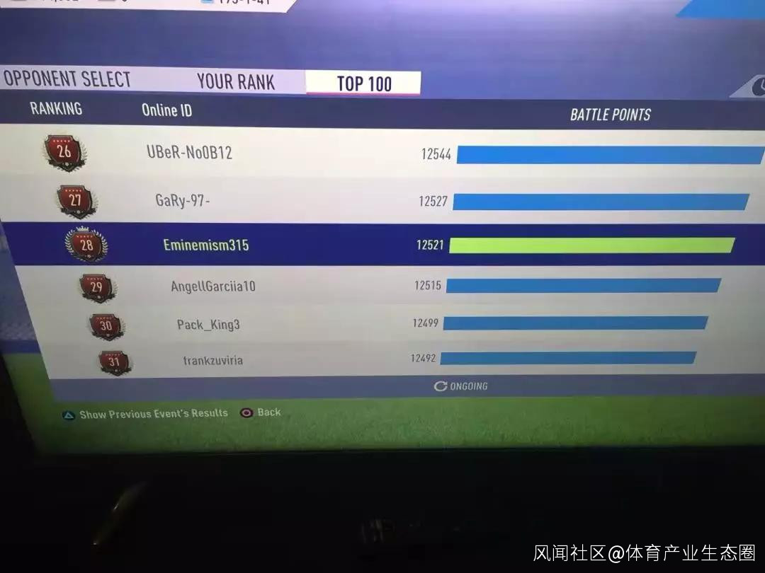劉元溢曾打入《FIFA18》UT模式世界前100名