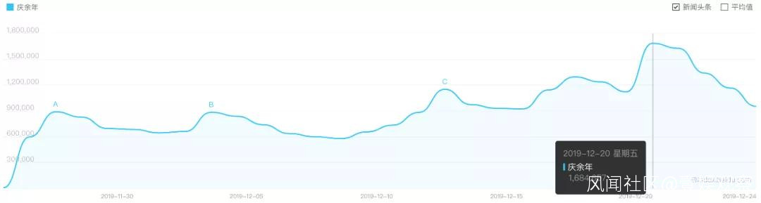 口碑端,《慶餘年》豆瓣開分8.0,目前已超過15萬人打分。熱度上,截至12月24日,該劇在騰訊視頻獲得累計播放量37億次,愛奇藝熱度值8612;百度指數峯值高達160萬,成為近兩年來首個破百萬的劇集,微信指數也超過《延禧攻略》,登頂網劇第一。