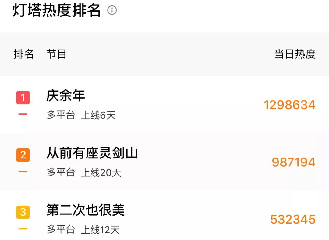 根據貓眼數據發佈的網播影視熱度指數,在小屏幕競爭格外激烈的11月,《慶餘年》《從前有座靈劍山》《第二次也很美》分列當月劇集熱度榜前三名。背後騰訊影業,正是這三部劇共同的出品方。