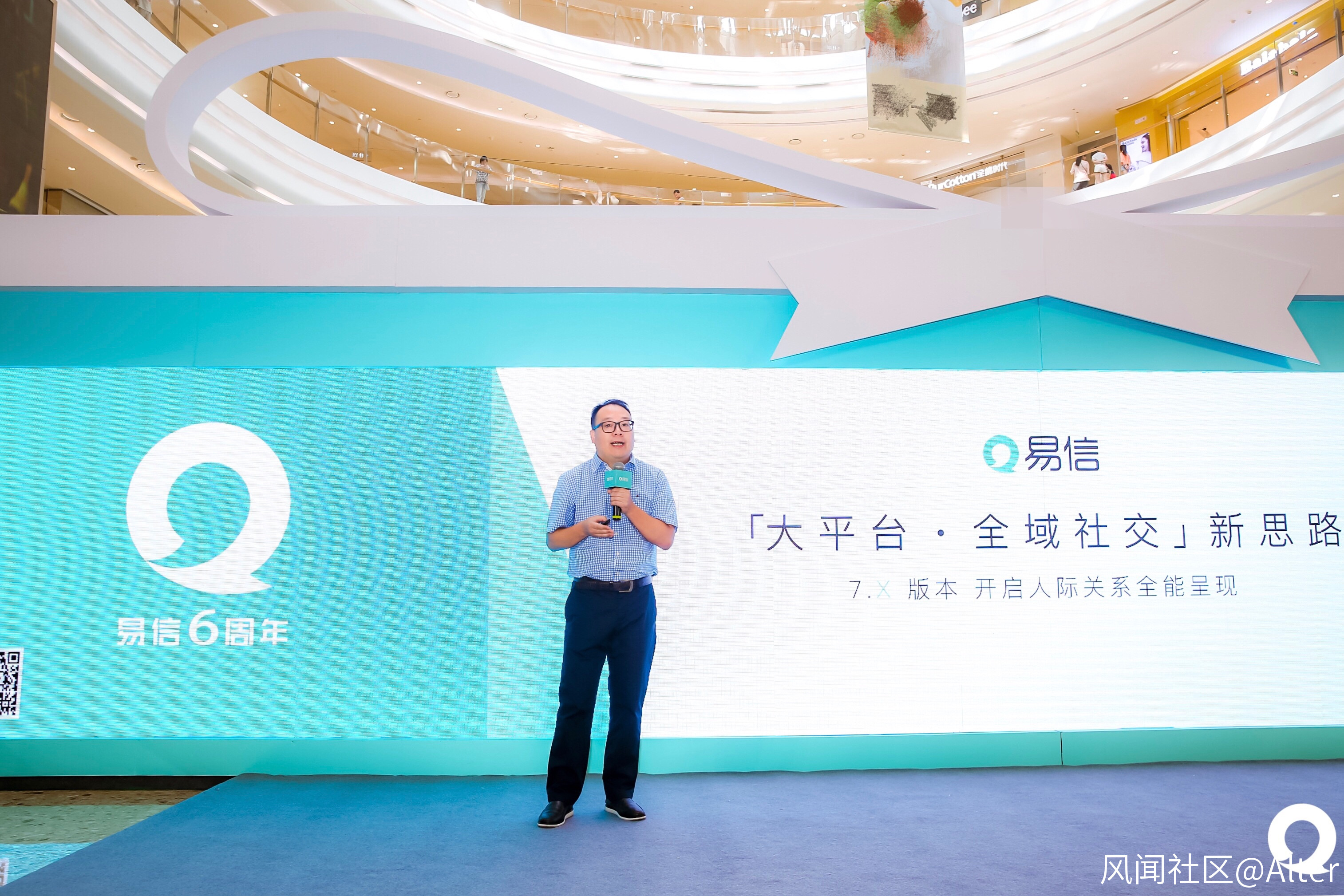 2019年8月底的一場新聞發佈會上,易信正式提出了“全域社交+大平台”的概念:“全域社交”的目的在於聚合陌生人,幫助朋友圈越來越窄的中年精英人羣擴大社交圈,打造獨立於微信之外的全新社交空間;“大平台”包括“説吧”平台、朋友圈平台以及資訊平台,為負重中年提供自我表達、溝通觀點的平台。