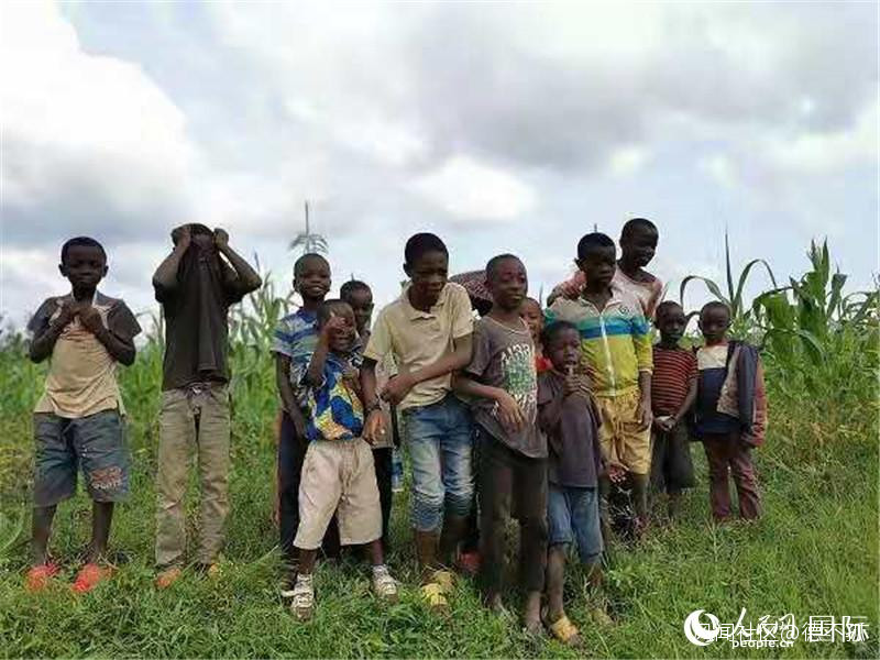 圍觀兒童向中國官兵豎起大拇指(王璽 攝)