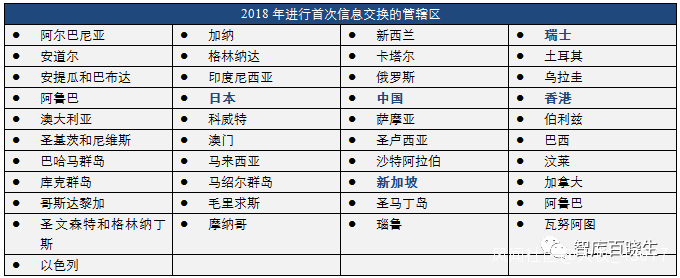 截止2019年8月,已有105個國家和地區承諾實施,涵蓋了幾乎所有的發達經濟體,還包括像BVI(英屬維爾京羣島)、開曼、百慕大和瑞士等全球“離岸避税地”和“洗錢中心”。