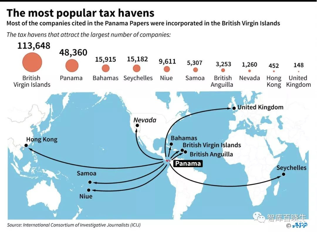 包括開曼、BVI、百慕大、馬恩島、澤西島、根西島、庫拉索島、安圭拉、塞浦路斯、愛爾蘭、盧森堡、荷蘭等。