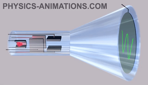 而在這之前,還有一種叫做陰極射線顯像管(俗稱大腦袋電視)的顯示器。在陰極射線管中,“陰極”其實是加熱的燈絲。加熱的燈絲處於真空的玻璃管中,然後加熱燈絲產生電子束。而它的工作原理就是靠電子束激發屏幕內表面的熒光粉來顯示圖像的,由於熒光粉被點亮後很快就會熄滅,所以電子槍必須循環地激發這些點。而長長的”腦袋“那裏經常是高考物理的一個大題。