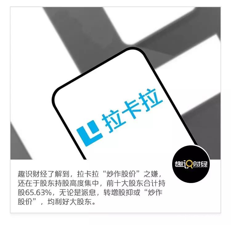 趣識財經瞭解到,拉卡拉“炒作股價”之嫌,還在於股東持股高度集中,前十大股東合計持股65.63%,無論是派息,轉增股抑或“炒作股價”,均利好大股東。