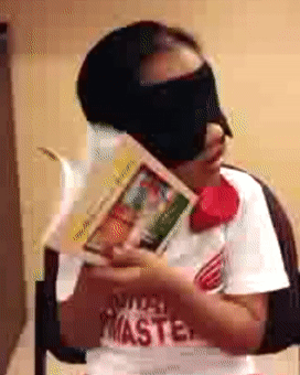 然而其實這還不是「量子速讀」的最高境界,真正的強者可以蒙上眼睛,然後用耳朵聽書。
