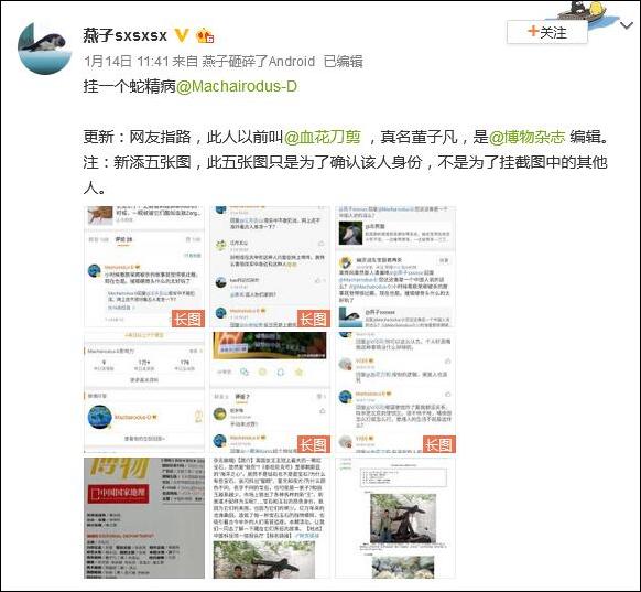 @Machairodus-D 的言論在網上引發軒然大波,不少網友被震驚的同時,都紛紛表示非常憤怒,有網友直接爆料該網友是博物雜誌的編輯董子凡。