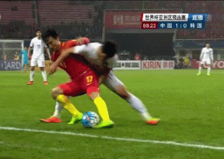 更別提在2017年,在國足主場1-0戰勝韓國的世界盃亞洲區12強賽上,當中國球員尹鴻博遭遇侵犯倒地後,韓國球員黃喜燦竟然連球帶人一腳踢出: