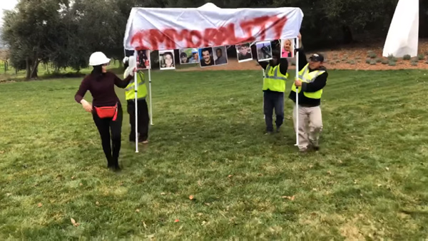 盧默和她來自墨西哥及危地馬拉的“朋友們”翻越圍牆進入了佩洛西位於加州納帕的家中,在草坪上設立了一個帳篷,並在帳篷上寫上“不道德”一詞,他們説這是佩洛西最喜歡的一個單詞。
