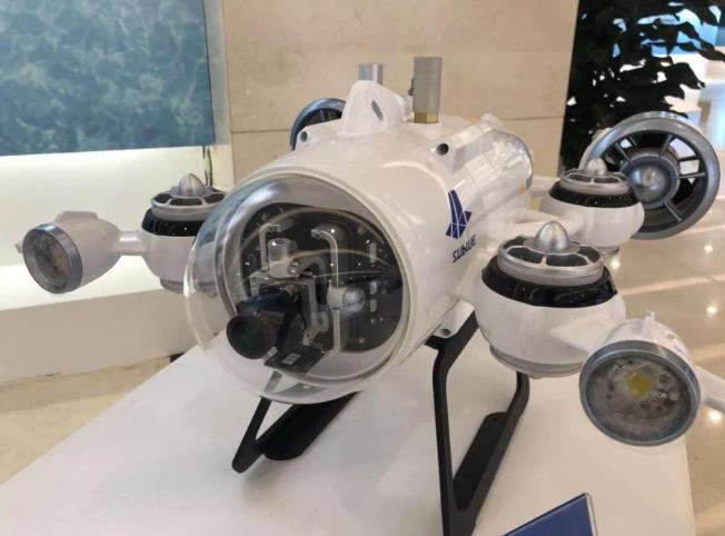 △水下觀測機器人,最深下潛深度可達100米。可在水下觀測、尋找、協助打撈、搭載其他設備完成各類任務。通過VR頭盔可以更沉浸式地觀測水下情況。(央視記者王哈男拍攝)