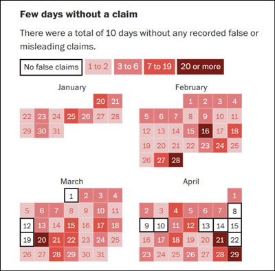 特朗普剛上任時,《華盛頓郵報》就着手整理他的言論,並在他任期滿100天時發佈首份報告。後來,因為特朗普發表的錯誤言論太多,應讀者要求繼續進行統計。