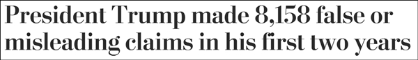 1月21日,《華盛頓郵報》根據旗下數據庫“Fact Checker”統計指出,自特朗普上任以來,短短兩年內已經發布了8158條虛假或誤導性言論,大多數出現在第二年,有超過6000條。