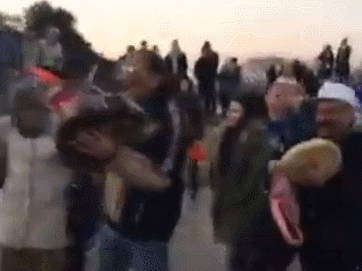 該視頻中這一畫面從53秒一直持續到3分44秒結束,周圍的人有的在拍照,有的在拍手,有的在歡呼。隱約可以聽見旁邊有人問:“發生了什麼?”(What’s going on?)