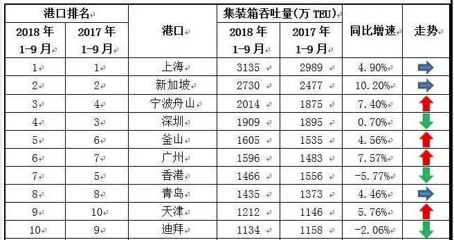 上海國際航運研究中心的報告顯示,2018年前三季度,在全球港口集裝箱吞吐量方面,上海再次奪魁,新加坡穩居第二。