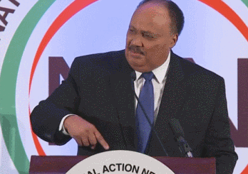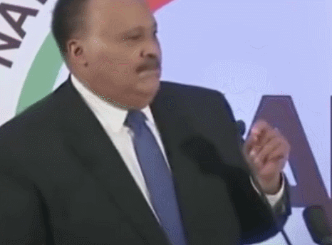 説到特朗普,馬丁·路德·金兒子和講台一塊跳了起來