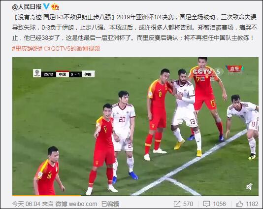 (觀察者網訊)北京時間1月25日0點,亞洲盃1/4決賽第二場進行,中國男足對陣伊朗隊。最終中國0-3負於伊朗,無緣亞洲盃4強。