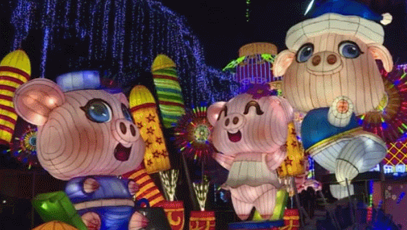 在視頻中,CNN還提到了元宵節的燈會,“有些花燈有22米高,這是色彩與想象力的結合,有鳥,有魚,當然,也有豬,點亮了黑夜。”