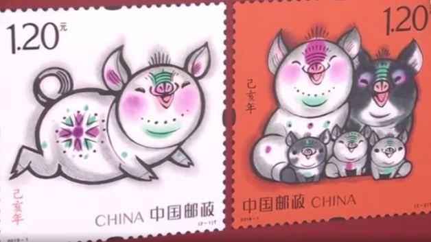 另外,中國郵政在豬年出了兩款新郵票。CNN介紹道:“一張選擇了一頭奔向幸福生活的豬,另一張選擇了豬豬的五口之家,幸福地生活在一起。這些快樂的豬,過年可能會待在家裏,以避免出行高峯。”
