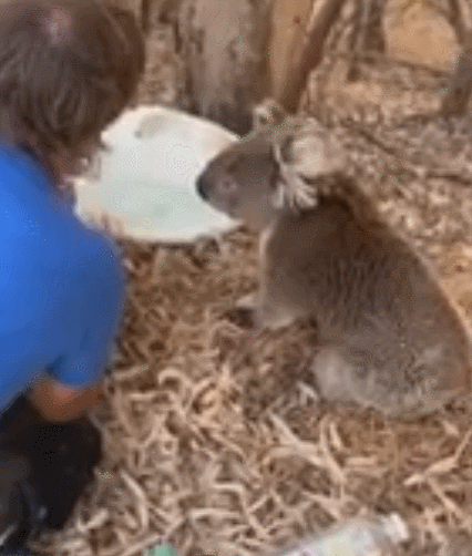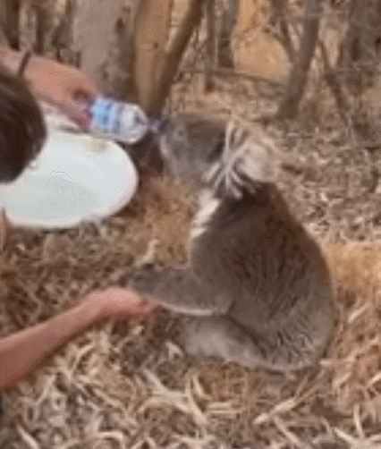 24日當天,酷暑難耐,Tim看到一隻已經奄奄一息的考拉趴在地上,於是拿來水給它餵食。