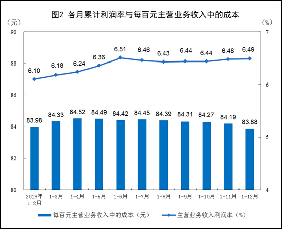 2018年,規模以上工業企業主營業務收入利潤率為6.49%,比上年提高0.11個百分點。