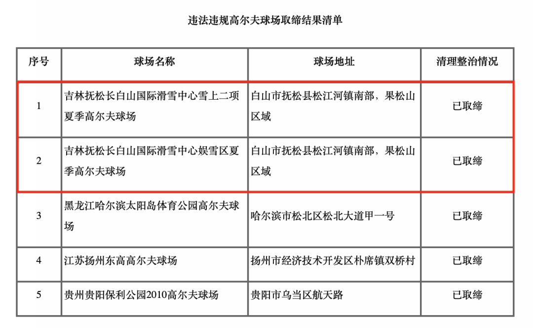 到了7月,住建部官網發佈《國家部委聯合公佈5個違法違規高爾夫球場取締結果》。