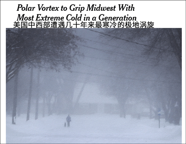 預計30日早晨全美接近四分之一的地區的氣温都會達到零下。受到影響的居民會達到5000多萬。愛荷華州德梅因市的國家天氣服務中心發出警告説:“這是我們大多數人經歷的最冷的天氣,如果外出,請儘量避免深呼吸以及儘量減少説話。”