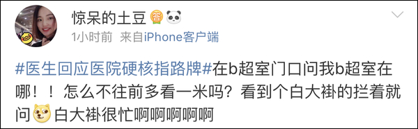 還有醫生天天被患者半道截胡當成人形GPS導航給整懵了,嚇得只要走出辦公室就要脱了白大褂,假裝自己是個無辜路人,不然光是上個廁所路上就能被七八個人拽住,妨礙到正常面診工作。