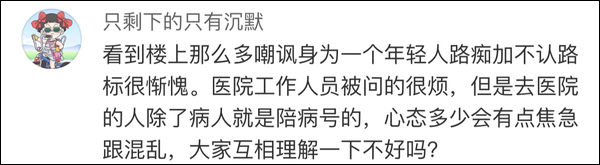 還有人吐槽剛給家屬指完路兩秒就忘,找不着了還要回過頭投訴自己。