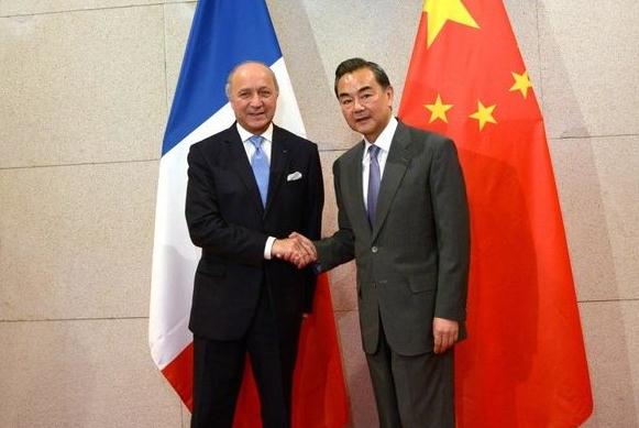 2014年,時任法國外長洛朗·法比尤斯(左)訪問中國(圖自法國駐華大使館)
