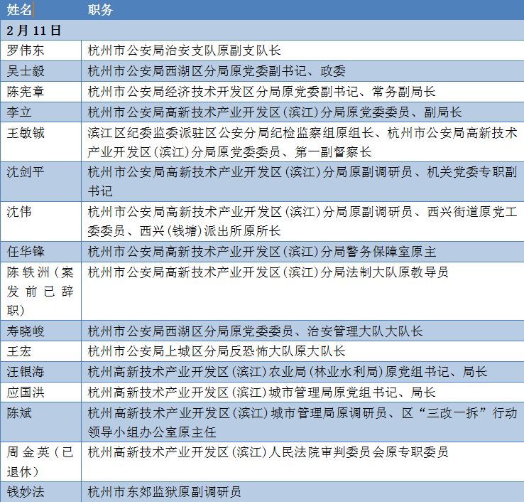 可以看到,27人中,17人來自公檢法司政法單位,杭州市公安局有12人。