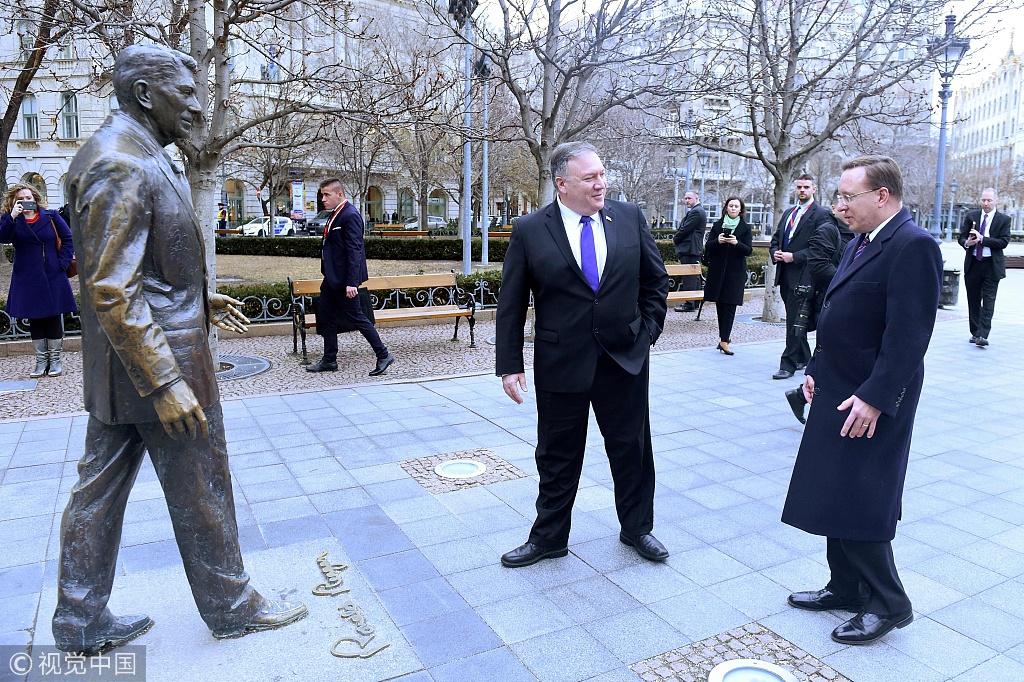 據美國雜誌《National Review》當地時間2月12日報道,蓬佩奧於11日首站訪問匈牙利,而他當天的第一個行程就是前往首都布達佩斯自由廣場,與美國前總統里根的雕像合影。