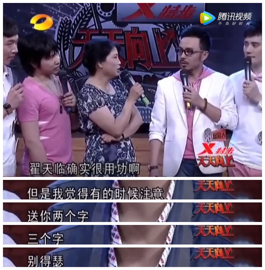 在2010年播出的一期《天天向上》裏,崔新琴對翟天臨的努力給予了肯定,隨後勸其“別嘚瑟”;
