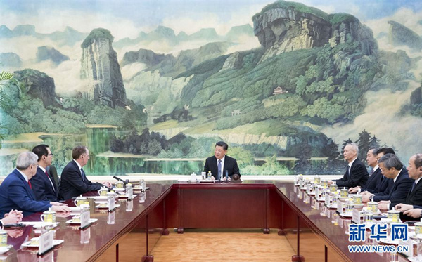 2月15日,國家主席習近平在北京人民大會堂會見來華進行新一輪中美經貿高級別磋商的美國貿易代表萊特希澤和財政部長姆努欽。 新華社記者 李學仁 攝